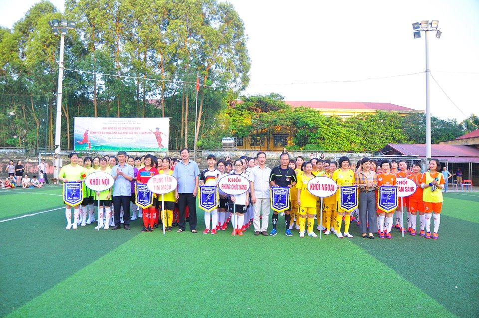 Chào mừng kỷ niệm 87 năm ngày Phụ nữ Việt Nam (20/10/1930 - 20/10/2017), 60 năm ngày thành lập Công đoàn Y tế Việt Nam (23/12/1957 – 23/12/2017), ngày 19/9/2017, tại sân vận động Đại Phúc diễn ra Lễ khai mạc giải bóng đá nữ Bệnh viện đa khoa tỉnh Bắc Ninh lần thứ I năm 2017 do Công đoàn - Đoàn thanh niên bệnh viện tổ chức. Tham gia giải có 70 vận động viên là cán bộ viên chức của các khoa phòng, gồm 5 đội bóng: - Đội bóng các phòng chức năng- Đội bóng các khoa hệ nội
