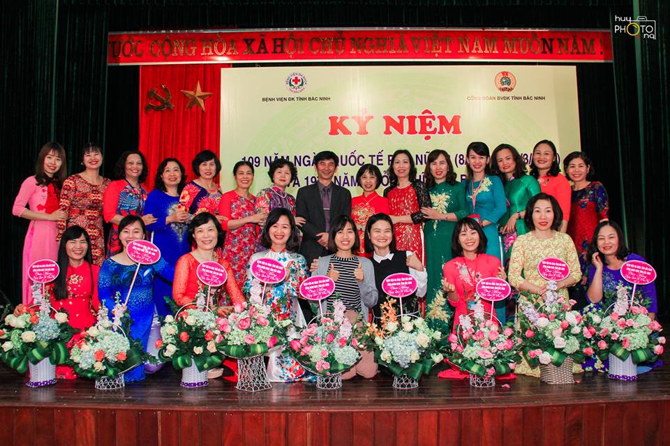 Chiều ngày 08/3/2019, Bệnh viện đa khoa tỉnh Bắc Ninh long trọng tổ chức Lễ kỷ niệm 109 năm ngày Quốc tế phụ nữ (08/03/1910- 08/03/2019) và 1979 năm khởi nghĩa Hai Bà Trưng. Đến dự Lễ kỷ niệm có các đồng chí trong Thường vụ Đảng ủy, Ban giám đốc, Ban chấp hành công đoàn, trưởng các đoàn thể, trưởng các Khoa/Phòng/Trung tâm và toàn thể nữ cán bộ viên chức Bệnh viện.