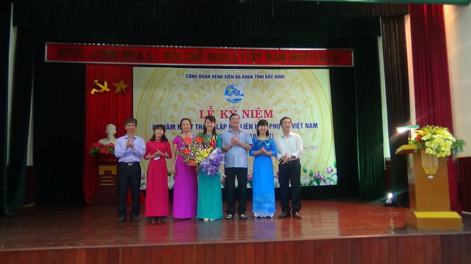Chiều ngày 20/10/2017, Bệnh viện đa khoa tỉnh Bắc Ninh long trọng tổ chức Lễ kỷ niệm 87 năm ngày phụ nữ Việt Nam (20/10/1930- 20/10/2017). Đến dự Lễ kỷ niệm có các đồng chí trong Thường vụ Đảng ủy, Ban giám đốc, Ban chấp hành công đoàn, trưởng các đoàn thể, trưởng các Khoa/Phòng/Trung tâm, điều dưỡng, kĩ thuật viên trưởng và toàn thể nữ cán bộ viên chức Bệnh viện.Tại Lễ kỷ niệm, các đại biểu cùng nhau ôn lại truyền thống lịch sử vẻ vang của phụ nữ Việt Nam. Phát huy truyền thống của phụ nữ trong thời kỳ xây dựng và phát triển đất nước, nữ cán bộ viên chức bệnh viện với bản tính cần cù, chịu khó, phấn đấu hoàn thành mọi nhiệm vụ được giao, đồng thời làm tốt vai trò của người phụ nữ trong gia đình, xây dựng gia đình ấm no, hạnh phúc, nuôi con khỏe, dạy con ngoan xứng đáng với danh hiệu người phụ nữ Việt Nam trong thời kì đổi mới: “Năng động – Sáng tạo – Trung hậu – Đảm đang”.