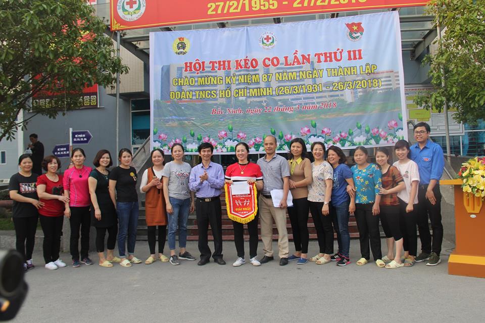 Chào mừng kỷ niệm 87 năm ngày thành lập Đoàn thanh niên cộng sản Hồ Chí Minh (26/3/1931 - 26/3/2018), ngày 22/3/2018, Bệnh viện đa khoa tỉnh Bắc Ninh tổ chức giải kéo co lần thứ III năm 2018 do Đoàn thanh niên bệnh viện tổ chức. Tham gia giải có hơn 200 vận động viên là cán bộ viên chức của các khoa, phòng, Trung tâm. Kết quả, Ban tổ chức trao giải cho các đội có thành tích xuất sắc như sau: