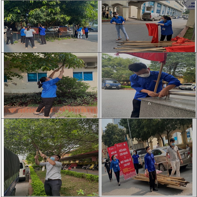 Chiều ngày 14/04/2022, hơn 100 đoàn viên thanh niên của 14 chi đoàn đã phát huy vài trò xung kích, tình nguyện, lao động thực hiện cắt các cành cây xà thấp ảnh hưởng đến tầm nhìn hoặc có nguy cơ gãy, đổ mất an toàn; thu gom hồng kỳ và chăm sóc các cây xanh trong khuôn viên bệnh viện; thu gom rác phát sinh, quét dọn đảm bảo thẩm mỹ và vệ sinh môi trường Bệnh viện.