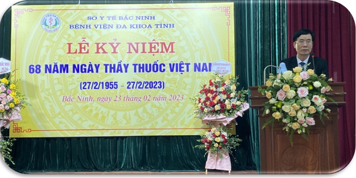 Chiều ngày 23/02/2023, Bệnh viện Đa khoa tỉnh Bắc Ninh long trọng tổ chức lễ kỷ niệm 68 năm ngày Thầy thuốc Việt Nam (27/02/1955 – 27/02/2023). Tham dự buổi lễ có đồng chí Nguyễn Chí Hành – Phó Bí thư Đảng ủy/Phó Giám đốc Sở Y tế, đồng chí Phạm Xuân Yến – Chủ tịch Công đoàn ngành Y tế, nguyên Lãnh đạo và các thầy thuốc ưu tú qua từng thời kỳ của Bệnh viện, Lãnh đạo Bệnh viện và lãnh đạo các khoa, phòng cùng các viên chức, người lao động tiêu biểu của các khoa, phòng.