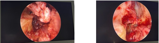 Qua thăm khám lâm sàng, nội soi tai và chụp cắt lớp vi tính tai xương đá, các bác sĩ xác định người bệnh bị viêm tai giữa mạn tính có cholesteatoma tai phải. Bệnh tích đã lan rộng vùng thượng nhĩ, ăn mòn thành sau trên ống tai; đặc biệt, tổn thương xương đã dẫn đến hở màng não – một biến chứng nặng, tiềm ẩn nhiều nguy cơ nguy hiểm.
