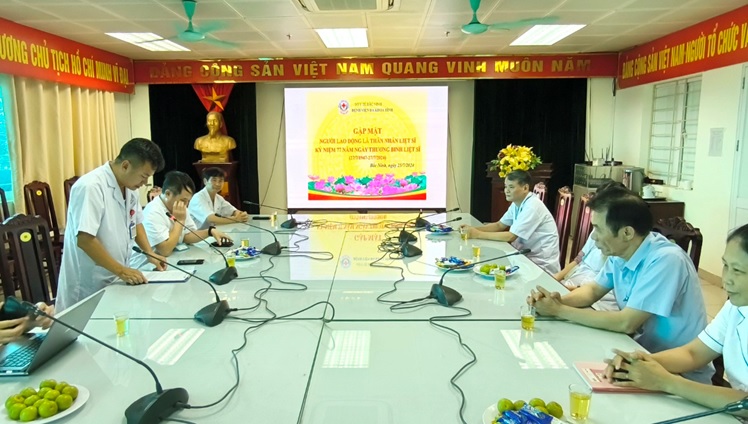 Chiều ngày 25/7/2024, Bệnh viện Đa khoa tỉnh Bắc Ninh tổ chức buổi gặp mặt viên chức, lao động Bệnh viện là thân nhân Liệt sỹ nhân kỷ niệm 77 năm ngày Thương binh - Liệt sỹ (27/7/1947 - 27/7/2024). Tham dự buổi gặp mặt có các đồng chí trong Đảng ủy, Ban Giám đốc Bệnh viện, BCH Công đoàn, BCH Đoàn Thanh niên và 09 nhân viên y tế là thân nhân Liệt sỹ.