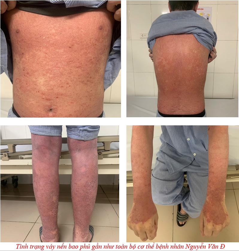 Đó là ca bệnh Nguyễn Văn Đ – một chàng trai mới 25 tuổi, quê ở phường Đại Xuân, thị xã Quế Võ – từng mang trên mình nỗi đau thầm lặng của căn bệnh vảy nến thể mảng toàn thân trong nhiều năm trời. Những tổn thương da đỏ rực, bong vảy trắng khô khốc, ngứa dấm dứt như kim châm – cứ thế bao phủ gần như toàn thân, đặc biệt là hai cẳng chân và hai tay, khiến Được không chỉ mệt mỏi về thể chất, mà còn kiệt quệ về tinh thần.