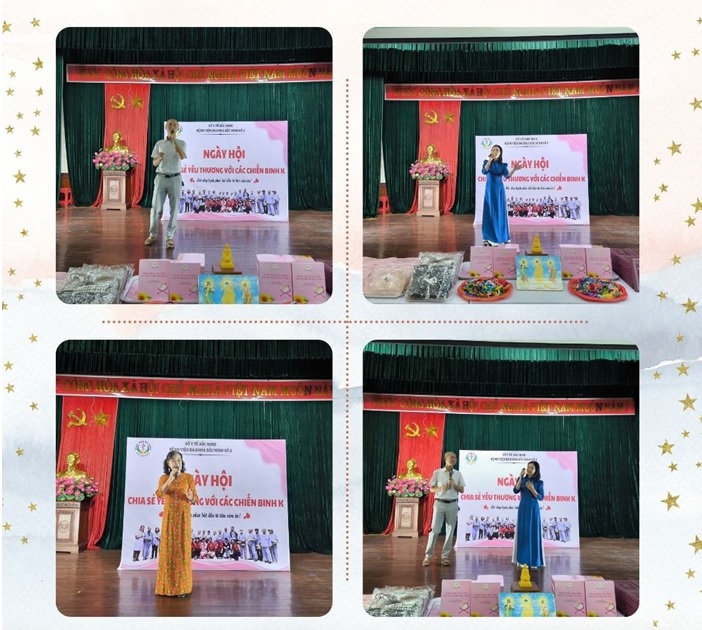 Trong khuôn khổ chương trình, với sự thấu hiểu sâu sắc những khó khăn, mặc cảm và nhu cầu thiết thực của các bệnh nhân ung thư – những “chiến binh K” kiên cường, Phòng Công tác xã hội cùng các nhà hảo tâm đã trân trọng gửi tặng tóc giả, áo ngực chuyên dụng, mũ đội đầu, vòng đeo tay bình an và những suất ăn miễn phí. Những món quà ấy không chỉ là vật dụng hỗ trợ, mà còn là kết tinh của tình thương và sự sẻ chia được chuẩn bị bằng tất cả sự nâng niu, ân cần. Mỗi món quà như mang theo hơi ấm của trái tim, như lời thì thầm dịu dàng: “Chúng ta cùng nhau sống - Bạn không hề đơn độc”. Chính nguồn yêu thương đã hóa thành sức mạnh, tiếp thêm niềm tin để người bệnh vững vàng hơn trên hành trình điều trị – biến ngày hội thành một không gian chan chứa niềm tin, nghị lực và những trái tim đồng cảm.