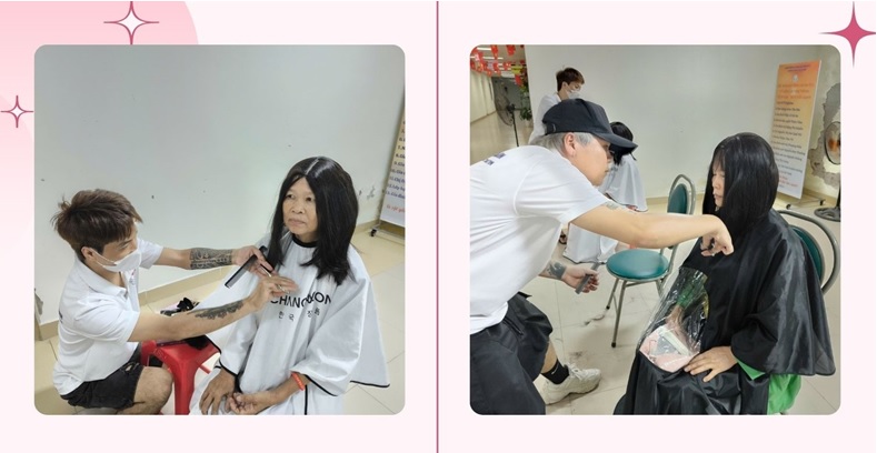 Niềm vui của ngày hội còn được nhân lên khi Viện tóc Tiến Tạo trực tiếp chỉnh sửa tóc cho các bệnh nhân; những ánh mắt rạng ngời, những nụ cười hạnh phúc đã nói thay lời cảm ơn.