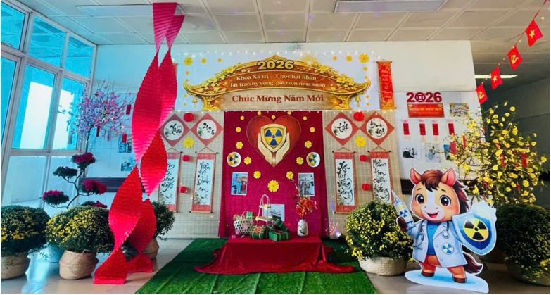Mùa xuân không dừng lại trước cửa phòng điều trị. Tại Khoa Xạ trị – Y học hạt nhân, giữa những ngày Tết Bính Ngọ 2026, hành trình chữa bệnh vẫn tiếp tục. Từ sự thấu cảm và đồng hành ấy, một mùa xuân đặc biệt đã được viết nên ngay trong không gian điều trị, với Tiểu cảnh Tết đong đầy yêu thương.