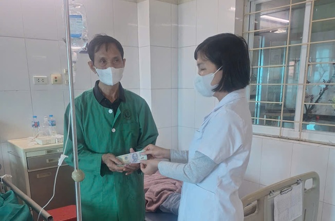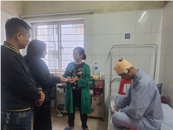 Thấu hiểu hoàn cảnh khó khăn của người bệnh, ngày 05/3/2026, gia đình chị Ngô Thị Quyên đã đến thăm hỏi, động viên và gửi tặng anh Huy, anh Chung mỗi người 1.000.000 đồng trong thời gian điều trị tại Khoa Phẫu thuật Thần kinh lồng ngực.