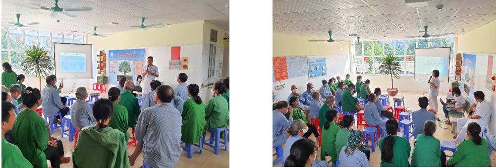 Nhằm cung cấp những thông tin cần thiết về công tác chăm sóc sức khỏe, chế độ dinh dưỡng cho bệnh nhân, người nhà bệnh nhân từ đó góp phần nâng cao nhận thức, tăng cường phối hợp giữa người bệnh và NNNB với nhân viên y tế trong quá trình điều trị, chiều ngày 30/11/2022, Phòng công tác xã hội phối hợp cùng phòng Điều dưỡng, khoa Dinh dưỡng, khoa Phục hồi chức năng tổ chức buổi truyền thông giáo dục sức khỏe tại khoa Lão khoa thần kinh.Tại buổi truyền thông, NB và NNNB được nghe các báo cáo viên Bệnh viện chia sẻ những thông tin, kiến thức cần thiết về chăm sóc sức khỏe: