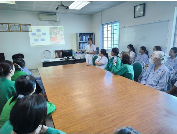 Tiếp nối chương trình, CĐDD Nguyễn Thị Bưởi – Khoa Dinh dưỡng – giúp người bệnh hiểu sâu hơn vai trò của dinh dưỡng trong phẫu thuật ngoại khoa: “người bạn thầm lặng” nhưng quyết định lớn đến kết quả điều trị.