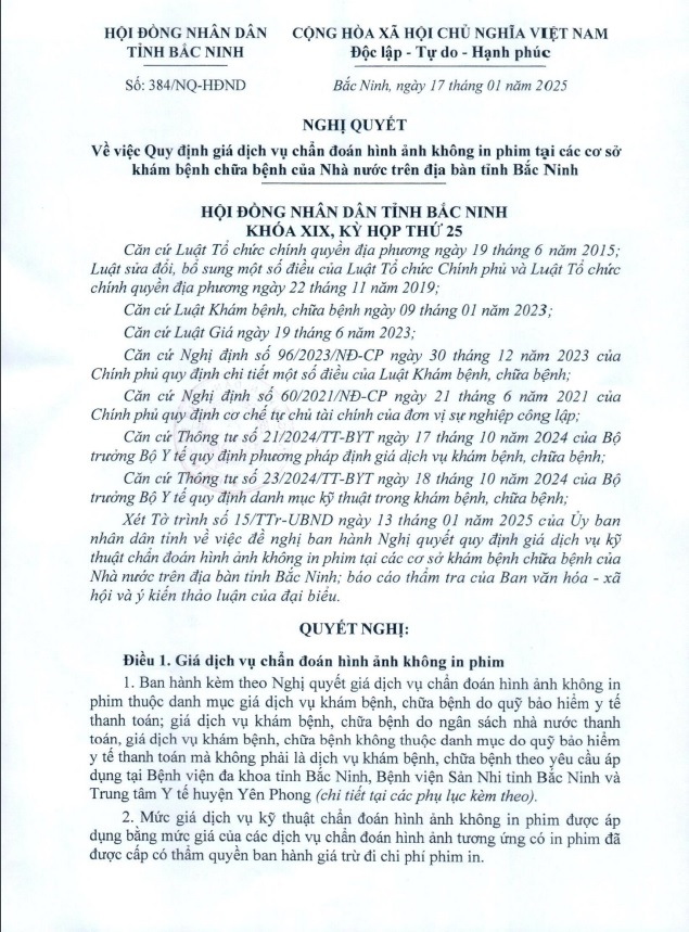 BẢNG GIÁ DỊCH VỤ KHÁM BỆNH, CHỮA BỆNH BẢO HIỂM Y TẾ THEO THÔNG TƯ 22/2023/TT-BYT ÁP DỤNG TẠI BỆNH VIỆN ĐA KHOA TỈNH BẮC NINH