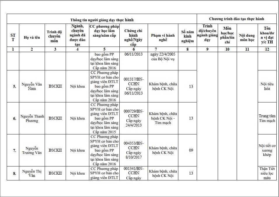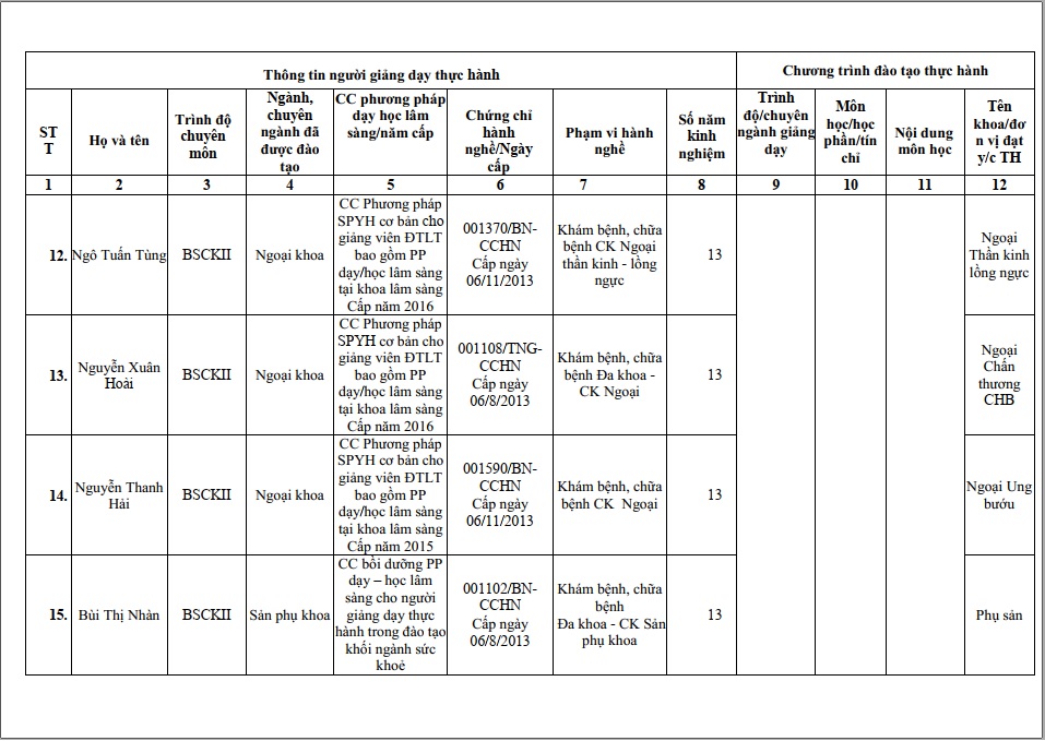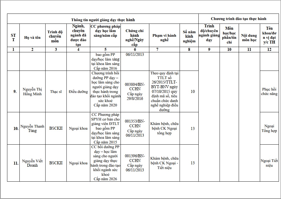 BẢN CÔNG BỐ CƠ SỞ KHÁM BỆNH, CHỮA BỆNH ĐÁP ỨNG YÊU CẦU LÀ CƠ SỞ THỰC HÀNH TRONG ĐÀO TẠO KHỐI NGÀNH SỨC KHỎE(CHUYÊN KHOA I CHUYÊN NGÀNH ĐIỀU DƯỠNG)