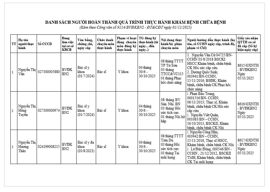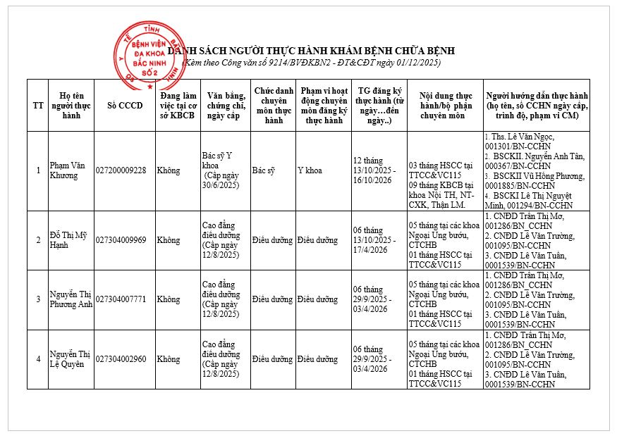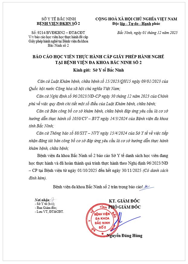 Báo cáo học viên học thực hành để cấp Giấy phép hành nghề tại Bệnh viện đa khoa Bắc Ninh số 2