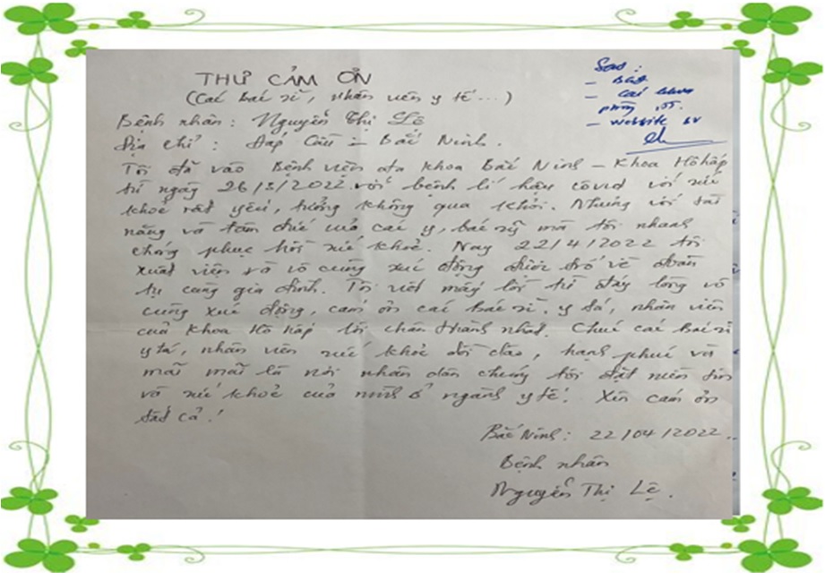 LÁ THƯ CẢM ƠN CỦA BỆNH NHÂN GỬI TỚI ĐỘI NGŨ Y BÁC SĨ KHOA NỘI HÔ HẤP