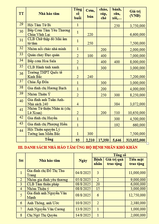 DÀNH TẶNG 493,108,000 ĐỒNG ĐẾN VỚI CÁC BỆNH NHÂN CÓ HOÀN CẢNH KHÓ KHĂN - THÁNG 8/2025