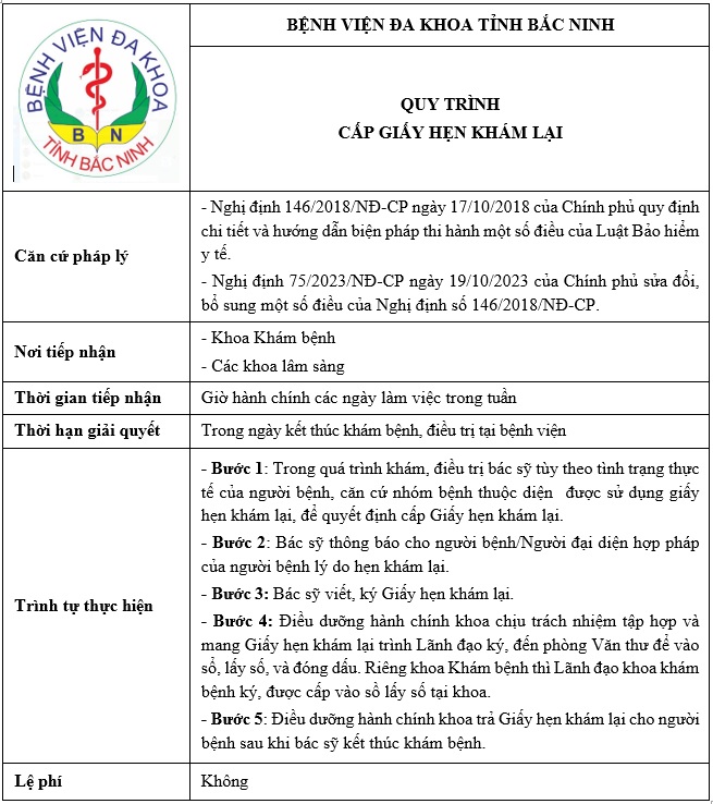 QUY TRÌNH CẤP GIẤY HẸN KHÁM LẠI