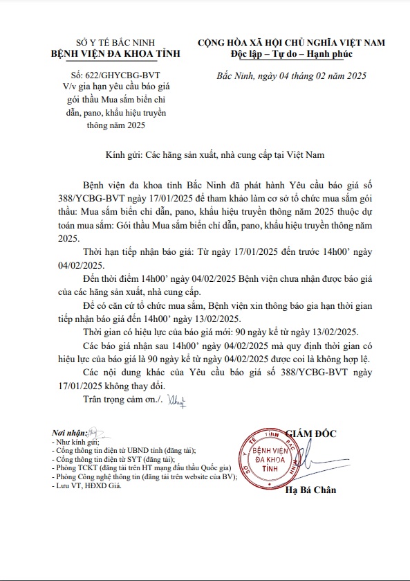 Gia hạn yêu cầu báo giá gói thầu Mua sắm biển chỉ dẫn, pano, khẩu hiệ truyền thông năm 2025
