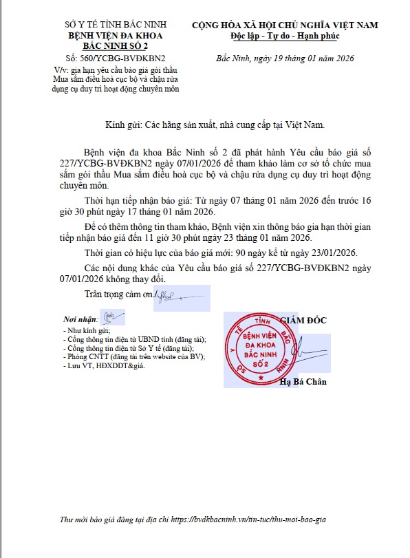 Gia hạn yêu cầu báo giá gói thầu Mua sắm máy khí dung