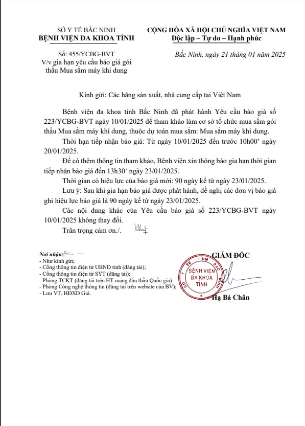 Gia hạn yêu cầu báo giá gói thầu Mua sắm máy khí dung