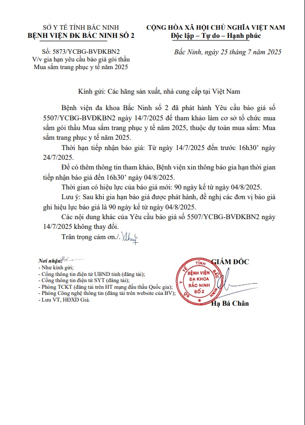 Gia hạn yêu cầu báo giá gói thầu Mua sắm trang phục y tế năm 2025