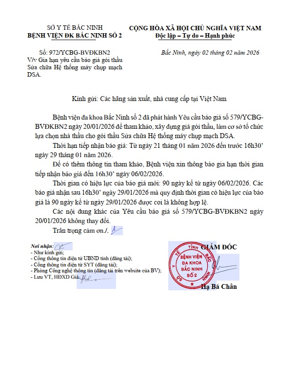 Gia hạn yêu cầu báo giá gói thầu Sửa chữa Hệ thống máy chụp mạch DSA