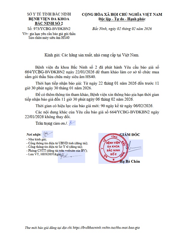 Gia hạn yêu cầu báo giá gói thầu Sửa chữa máy siêu âm HS40