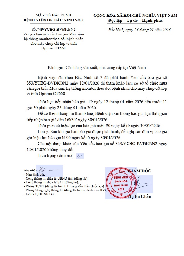 Gia hạn yêu cầu báo giá Mua sắm hệ thống monitor theo dõi bệnh nhân cho máy chụp cắt lớp vi tính Optima CT660