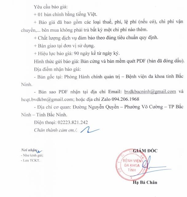 Gia hạn yêu cầu báo giá gói thầu Mua sắm các biểu mẫu giấy tờ chuyên môn năm 2024-2025