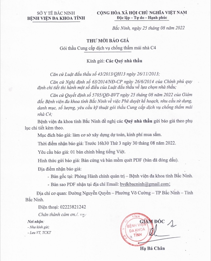 THƯ MỜI BÁO GIÁ Gói thầu Cung cấp dịch vụ chống thấm mái nhà C4