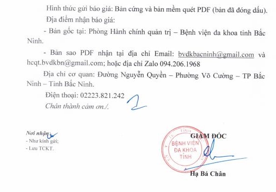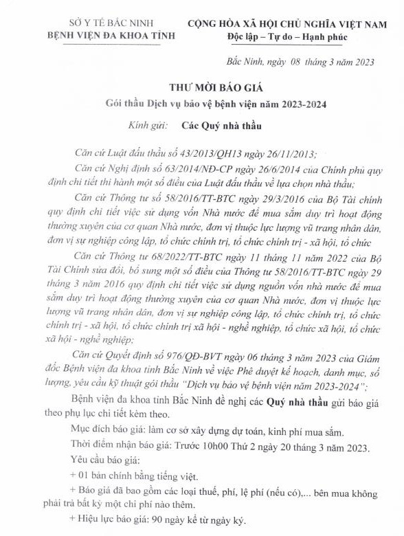 Thư mời báo giá Gói thầu dịch vụ bảo vệ bệnh viện năm 2023-2024