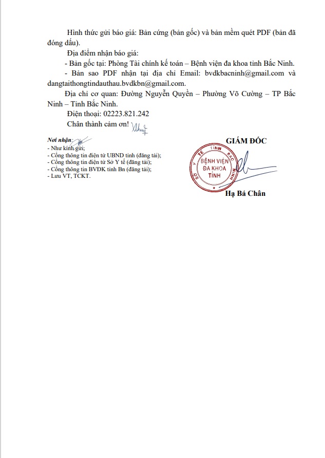Yêu cầu báo giá gói thầu: Mua sắm bổ sung 02 hoá chất, thiết bị y tế năm 2025