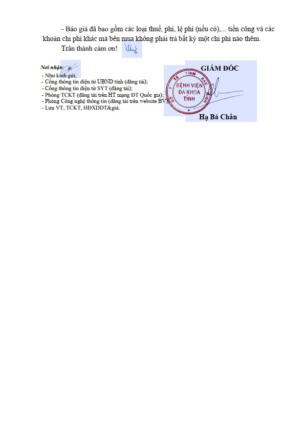 Thư mời báo giá Mua sắm bổ sung các biểu mẫu giấy tờ chuyên môn