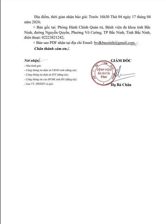 Thư mời báo phí dịch vụ (Lần 3) V/v Thẩm định giá gói thầu Mua sắm vật tư tiêu hao, linh kiện thay thế cho hệ thống CT 16 lát cắt Somatom Scope