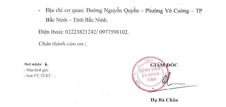 Yêu cầu báo giá gói thầu Thuê dịch vụ chứng thực chữ ký số phục vụ ký số tại Bệnh viện đa khoa Bắc Ninh số 2