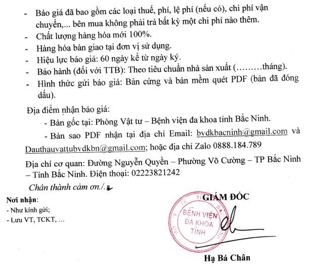 THƯ MỜI BÁO GIÁ Các gói thầu thuộc dự án Mua sắm trang thiết bị y tế triển khai kỹ thuật mổ tim