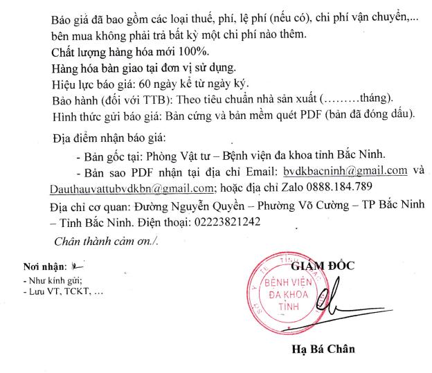 Yêu cầu báo phí thẩm định giá Gói "Thanh lý 02 xe cứu thương của Bệnh viện đa khoa tỉnh Bắc Ninh"
