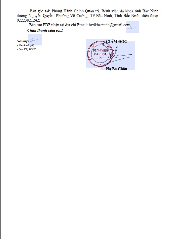Yêu cầu báo giá gói thầu Thuê dịch vụ chứng thực chữ ký số phục vụ ký số tại Bệnh viện đa khoa Bắc Ninh số 2