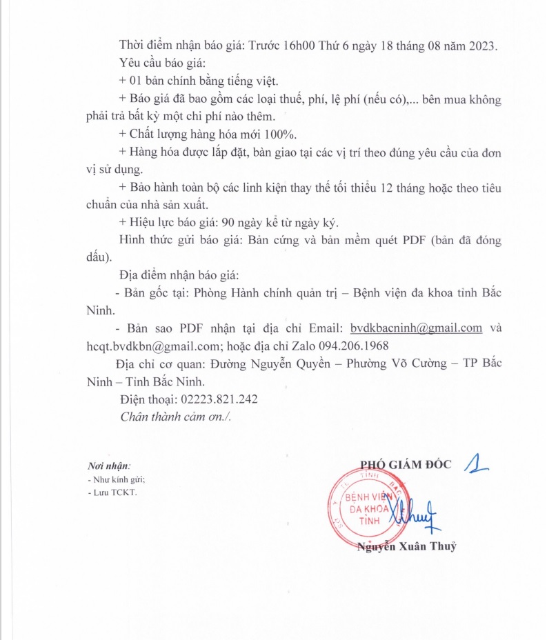 Thư mời báo giá