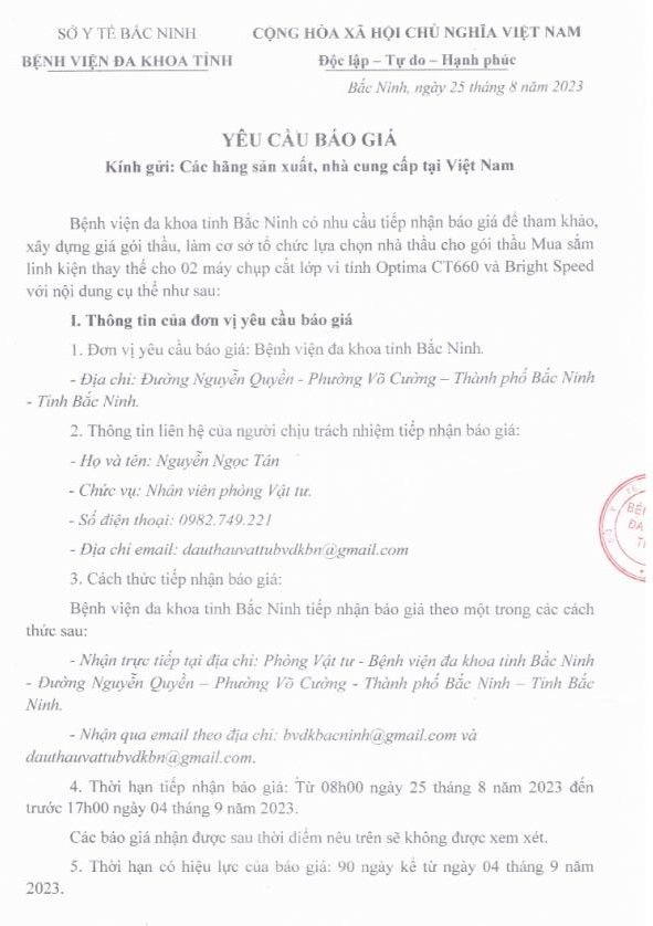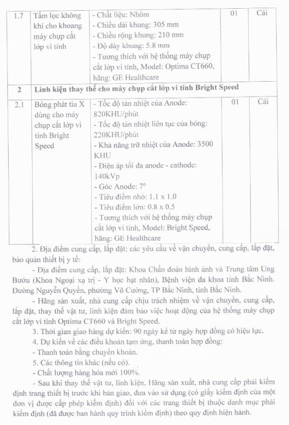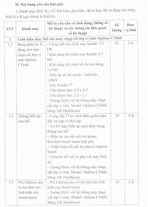 Thư mời báo giá: Mua sắm linh kiện thay thế cho 02 máy chụp cắt lớp vi tính Optima CT660 và Bright Speed