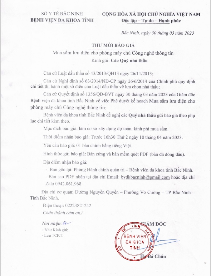 Thư mời báo giá Mua sắm lưu điện cho phòng máy chủ Công nghệ thông tin