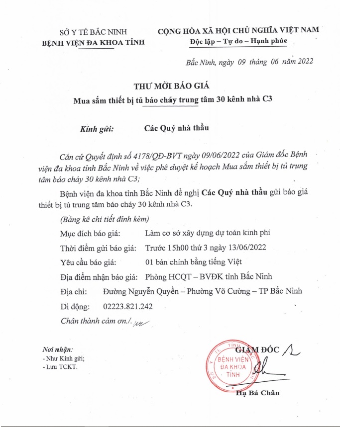 THƯ MỜI BÁO GIÁ MUA SẮM THIẾT BỊ TỦ BÁO CHÁY TRUNG TÂM 30 KÊNH NHÀ C3