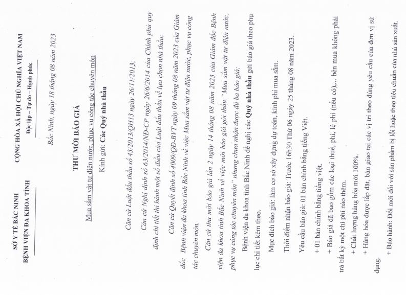 Thư mời báo giá: Mua sắm vật tư điện nước, phục vụ công tác chuyên môn