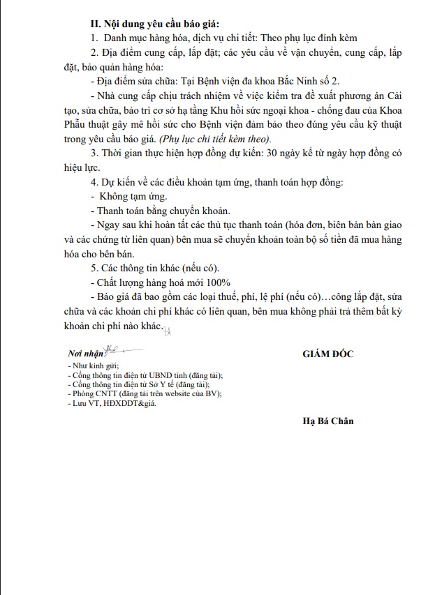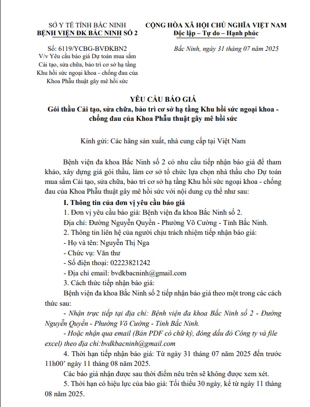 Yêu cầu báo giá Dự toán mua sắm Cải tạo, sửa chữa, bảo trì cơ sở hạ tầng Khu hồi sức ngoại khoa - chống đau của Khoa Phẫu thuật gây mê hồi sức
