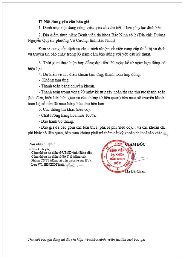 YÊU CẦU BÁO GIÁ Gói thầu Cung cấp thiết bị và dịch vụ truyền tin báo cháy trong 03 năm