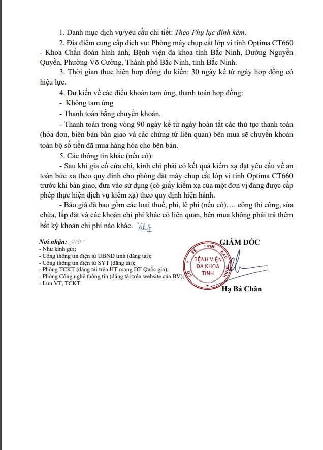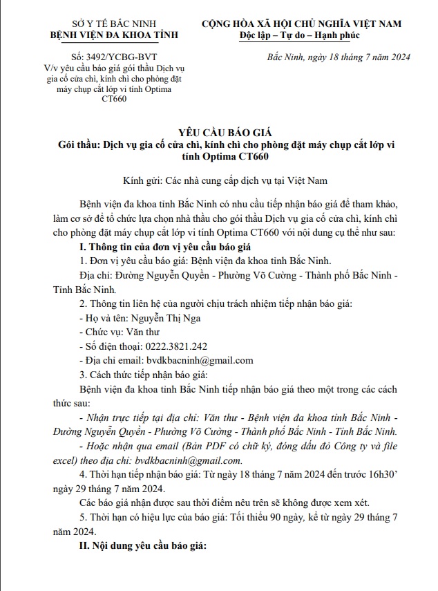 Yêu cầu báo giá Gói thầu: Dịch vụ gia cố cửa chì, kính chì cho phòng đặt máy chụp cắt lớp vi tính Optima CT660