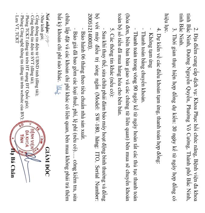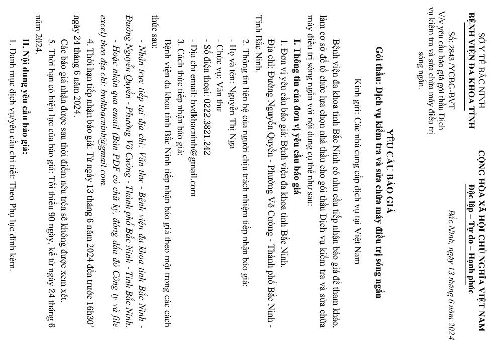 Yêu cầu báo giá Gói thầu: Dịch vụ kiểm tra và sửa chữa máy điều trị sóng ngắn