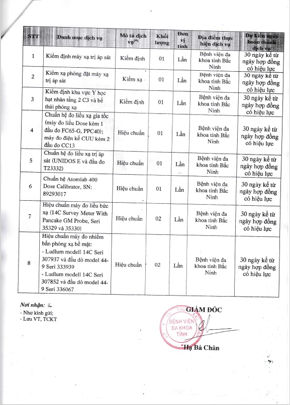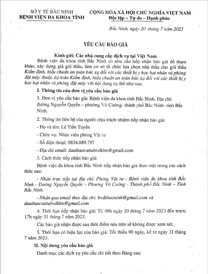 Yêu cầu báo giá Gói thầu Kiểm định, hiểu chuẩn an toàn bức xạ đối với các thiết bị y học hạt nhân và phòng đặt máy