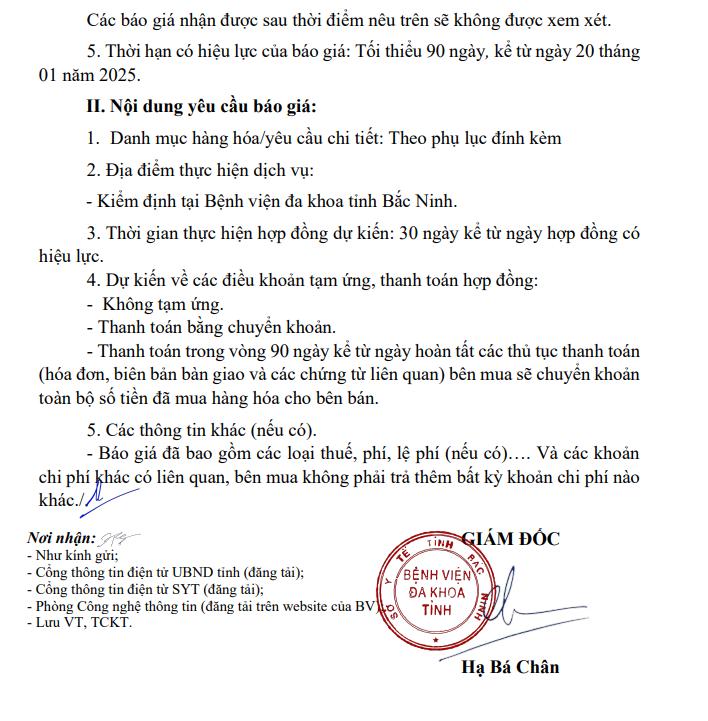 Thư mời thầu gói thầu mua sắm thuốc generic bổ sung tại Bệnh viện đa khoa tỉnh Bắc Ninh 2024