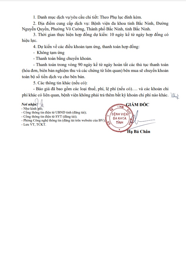 Gia hạn yêu cầu báo giá gói thầu Dịch vụ bảo vệ bệnh viện trong 2 năm 2025-2027